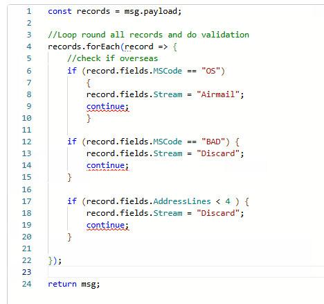 Sorry last question for awhile hopefully… but instead of using records.foreach is there a similar fucntion to get the record count and do a for loop instead? Reason I’m asking is before we migth have several if statements and if it hit one then we’d do a continue; so it left the loop and didn’t check anymore, but if I try that using that with forEach I get Jump target cannot cross function boundary.(1107)