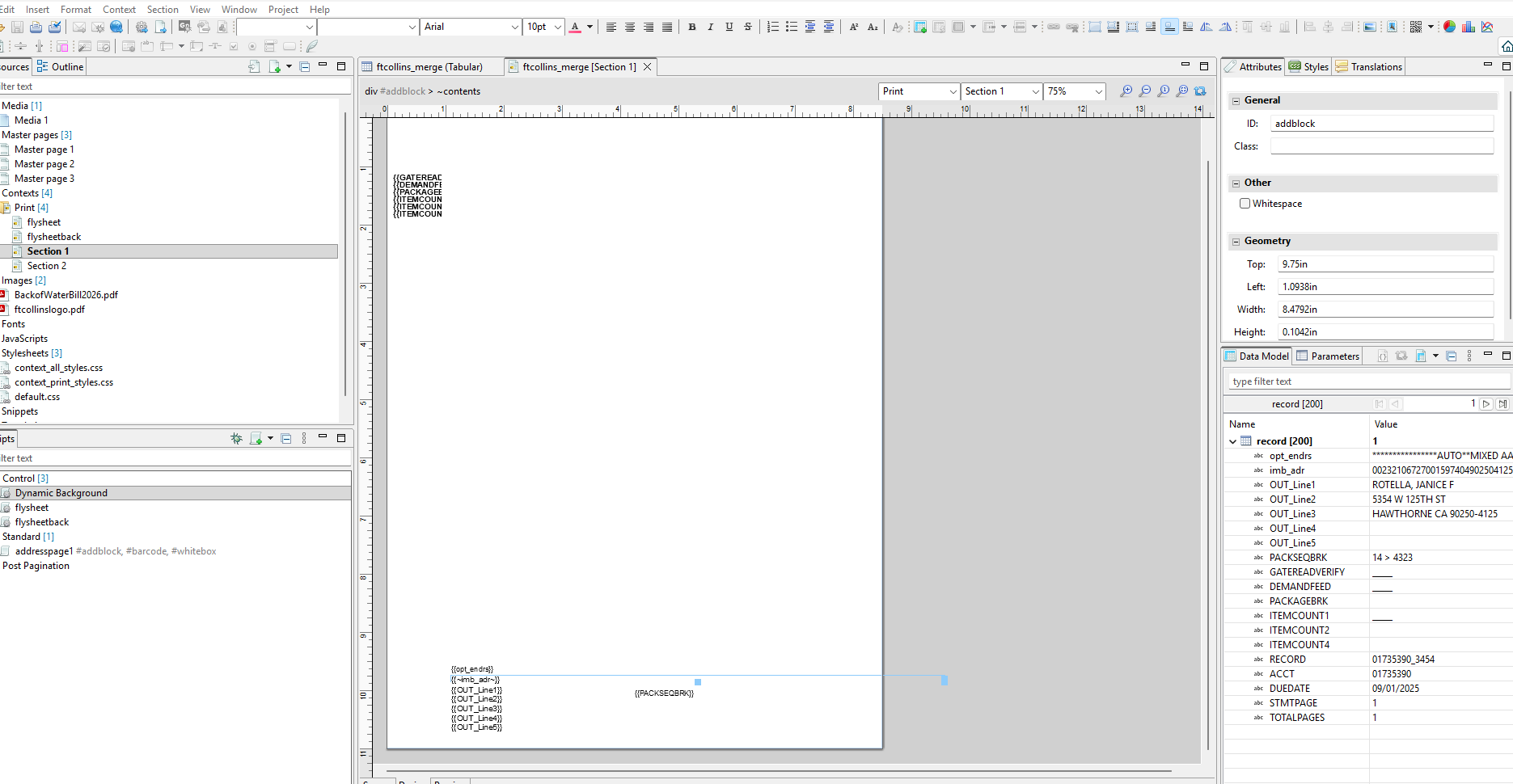 After Presorting, data is output in presorted order as a CSV file, and a second Datamapper and template are created to place updated address data and OMRs on the page.
