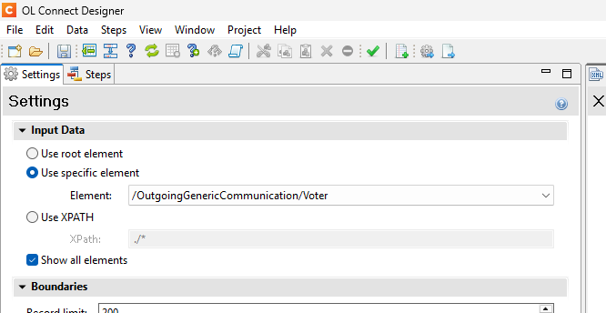 I need each ‘Voter’ to be it’s own record. To do this I have set my input data path to the below and get the desired results with each voter as it’s own record. My issue is I need the data that sits below my voter data (Event Identifier and Messages) to be displayed in every record. This data will be the same for every record and is only present once at the end of my xml file. The way i have it set up now the Event Identifier and Messages data isn’t even being displayed in the xml viewer. Is there a way to map these values and have it repeat for every record?