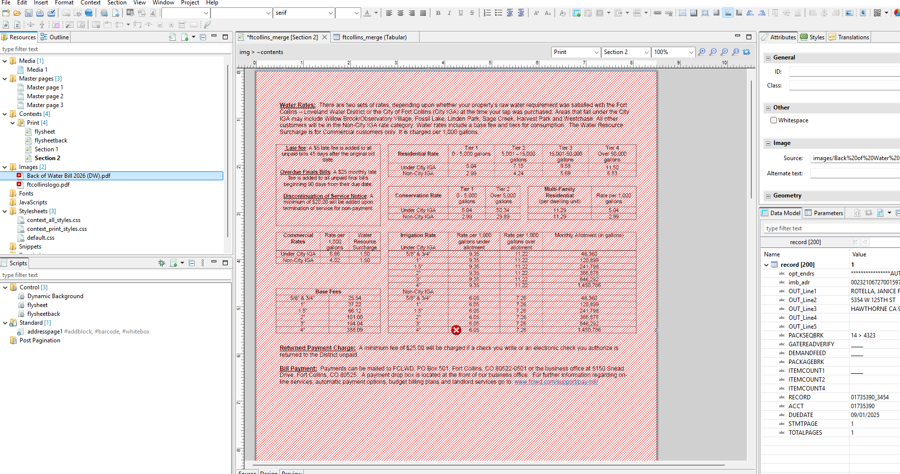 It is not a dynamic image and it is included in the template resources. It is a PDF of water rates for a utility bill, and replaces an nearly identical image that has worked fine for many months.