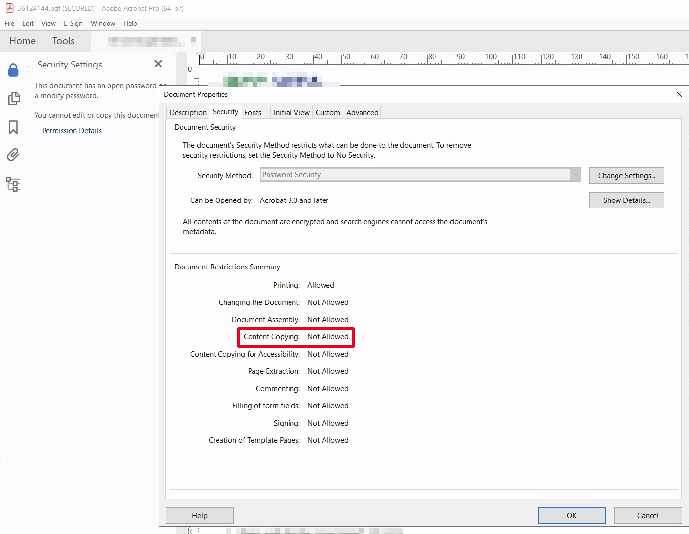 The reason why I am asking is because I am curious what security settings the protected PDF has.